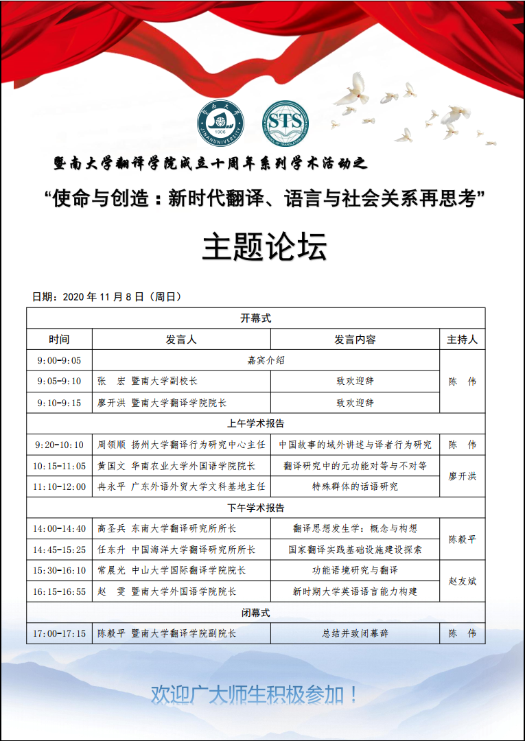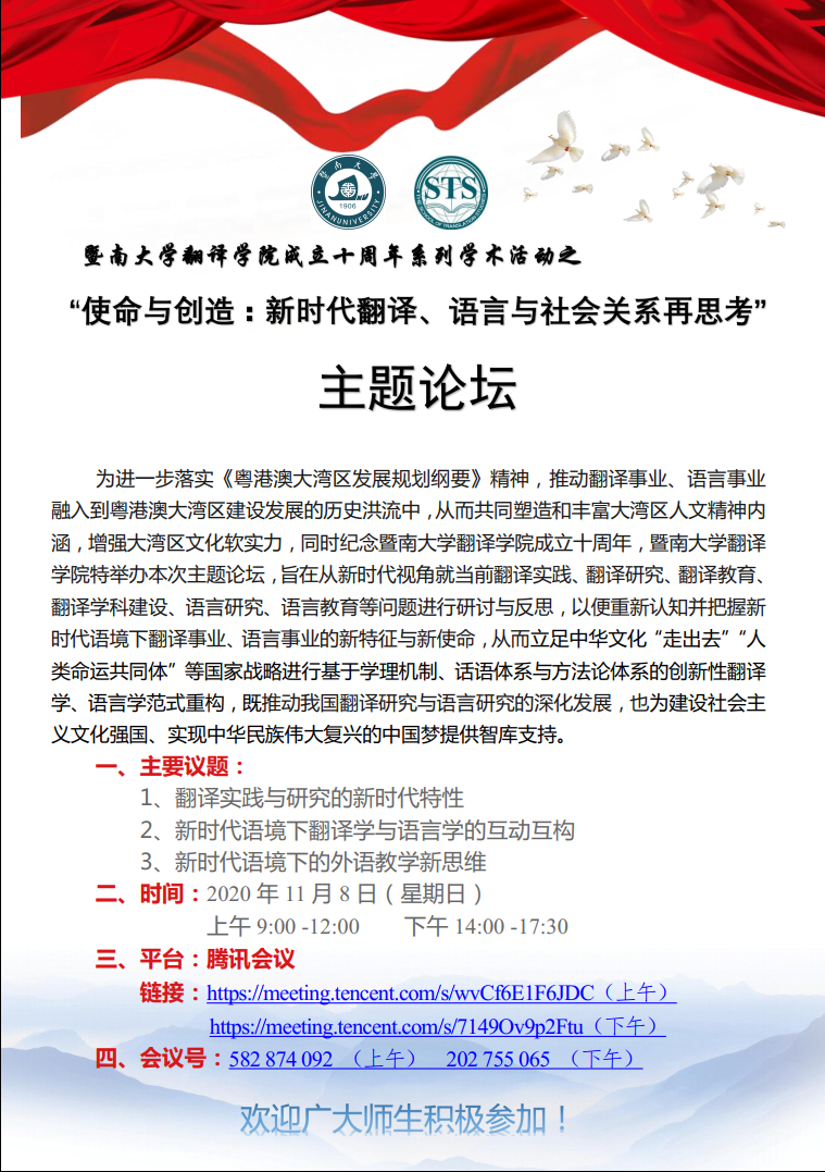 暨南大學翻譯學院成立十周年系列學術活動之“使命與創造:新時代翻譯、語言與社會關系再思考”